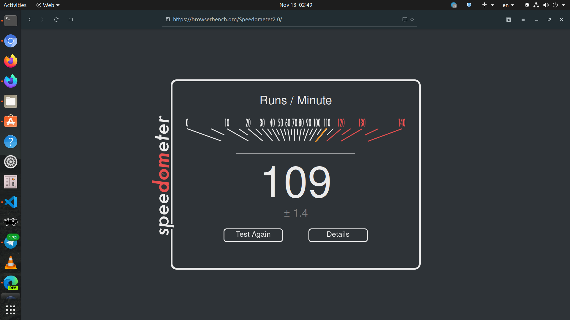 Speedometer 2.0 - GNOME Web on Ubuntu 20.04
