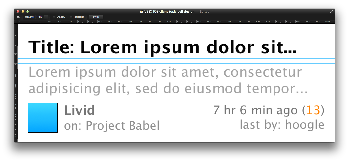 V2EX iOS client topic cell design with guides