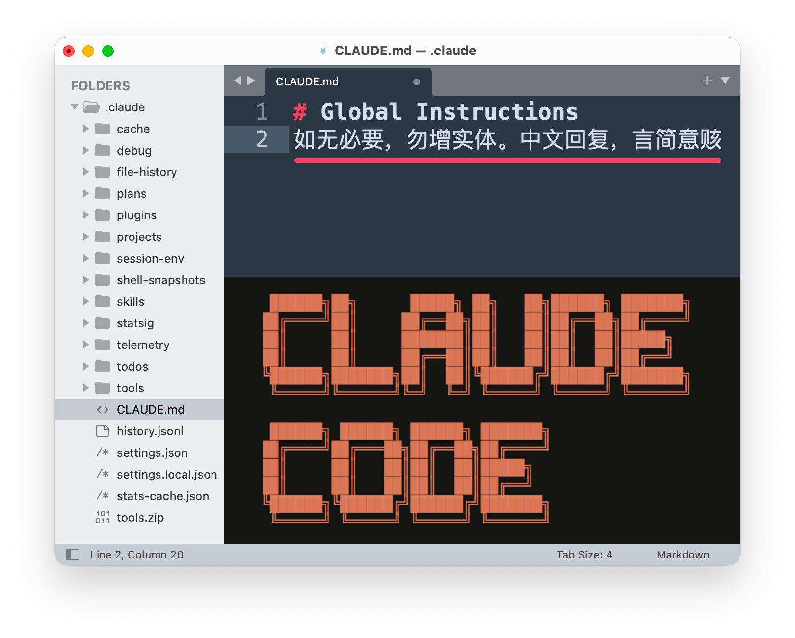 1️⃣ 极简的全局 Prompt 。我 CLAUDE 里写了 16 字箴言:“如无必要,勿增实体。中文回复,言简意赅”。