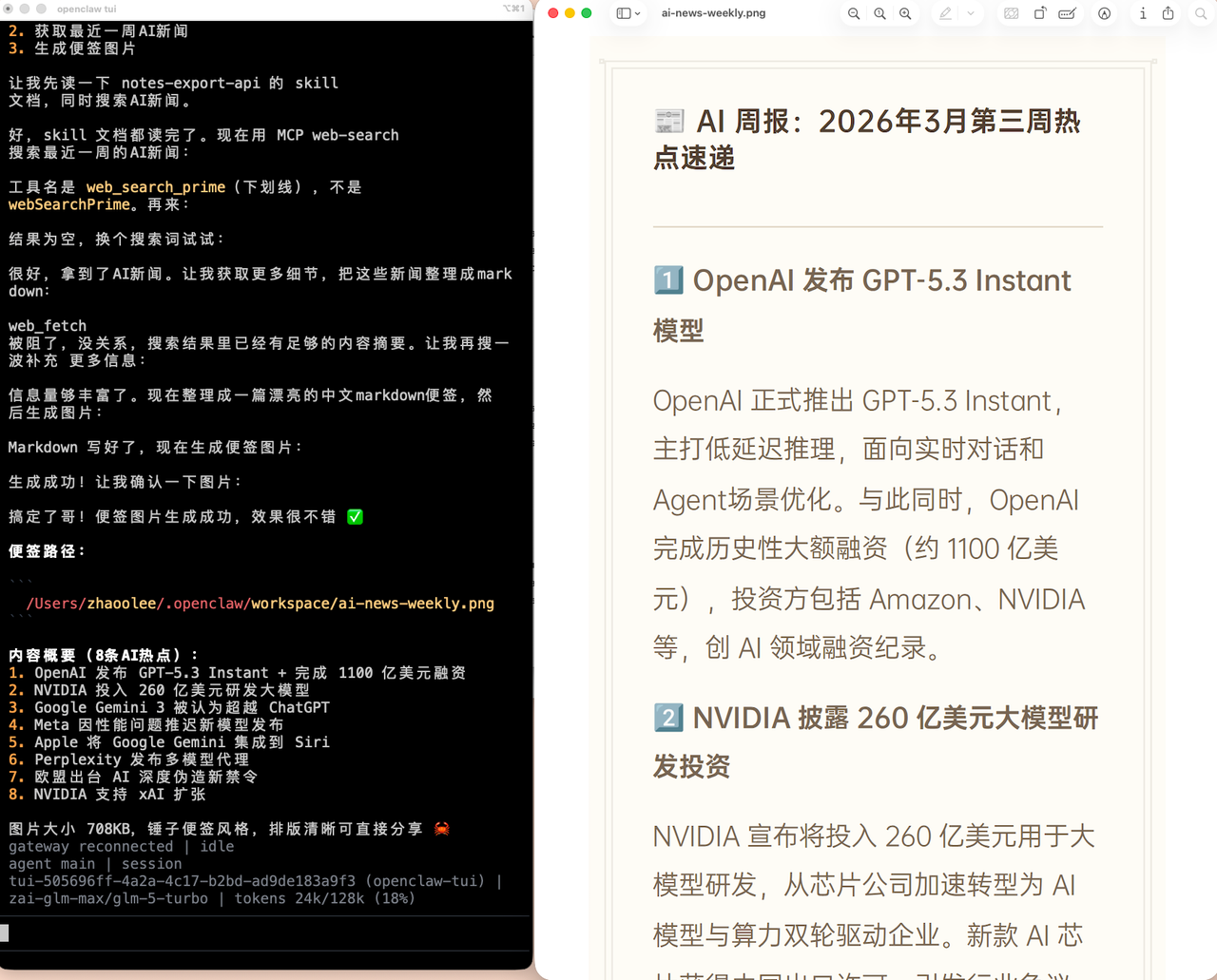 从 clawhub 安装 notes-export-api 这个 skill, 联网获取最近一周 AI 相关的新闻,将新闻转化为 markdown 生成便签图片,把便签图片绝对路径返回给我