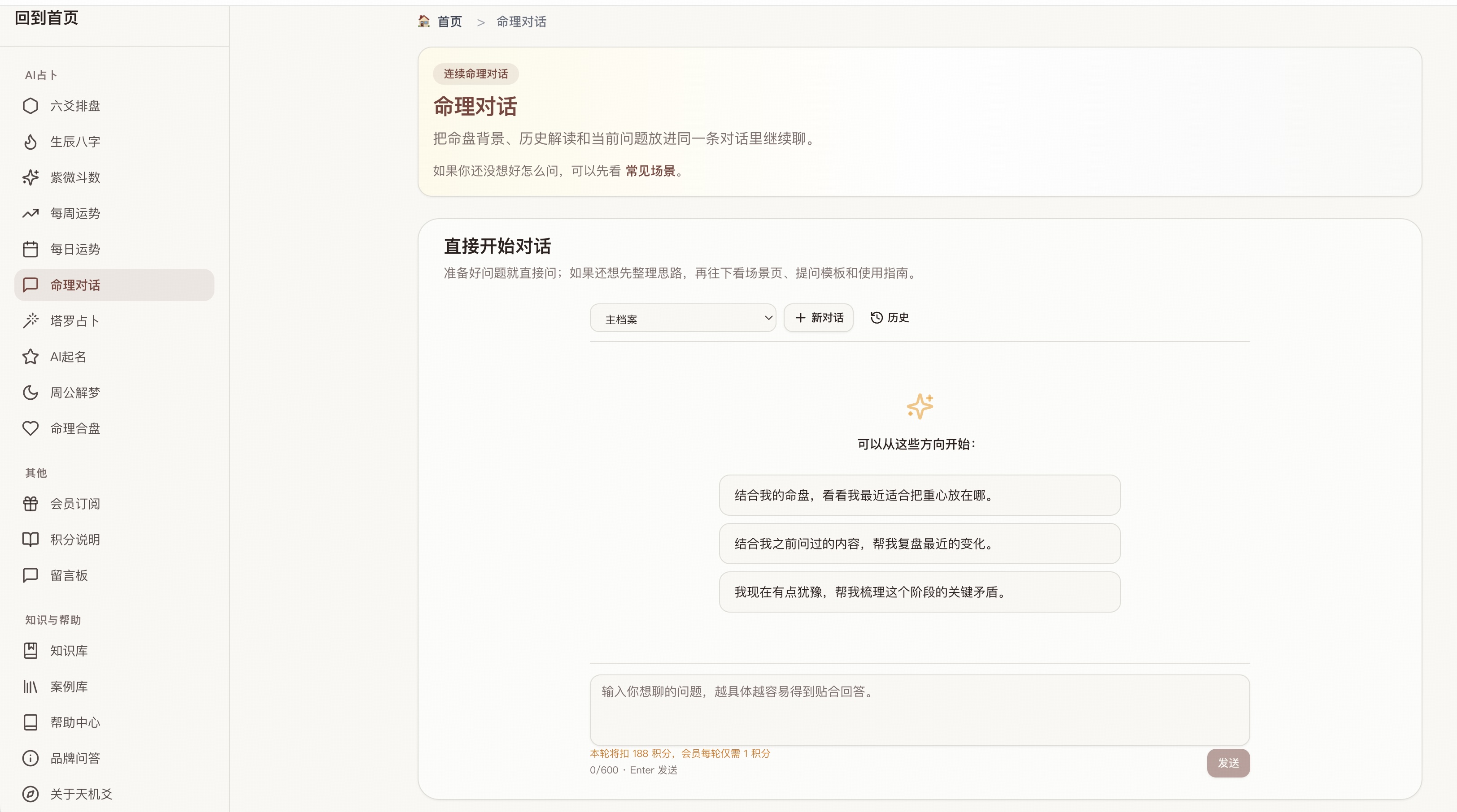 最近几天给我的网站的占卜八字和紫薇等已有的功能结合 DeepSeek 搓了一个命理聊天 AI