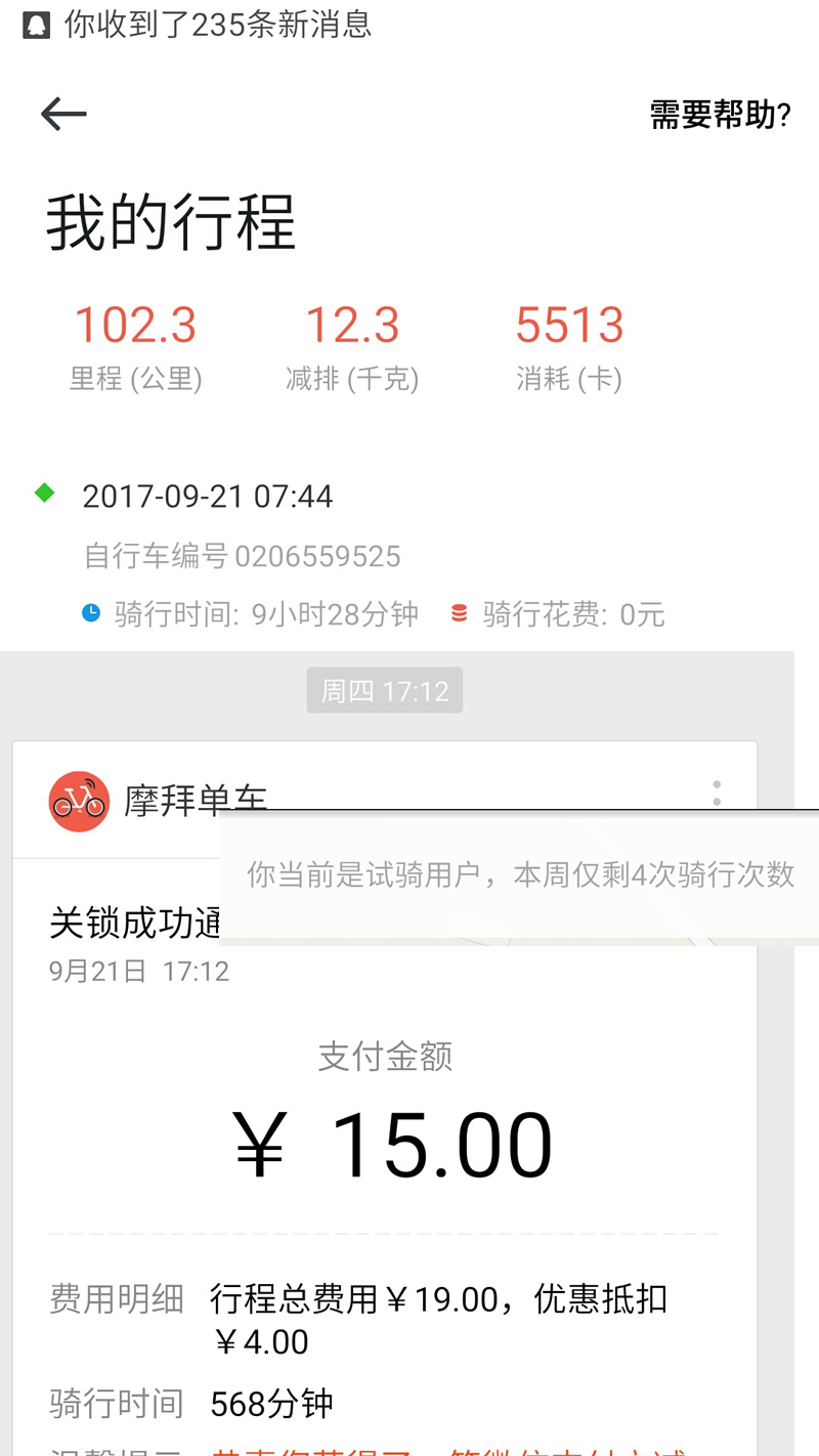 tabris17 2017 年 9 月 23 日 字太多了,没细看。我现在用微信扫摩拜,非常好用